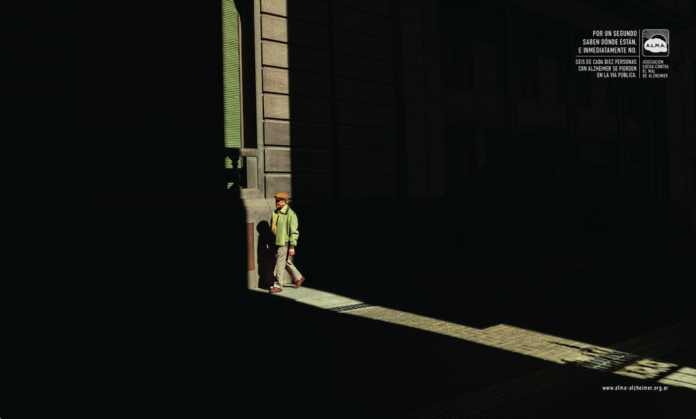 “Una vez más junto a la Asociación, una vez más haciendo cosas que creemos que son relevantes para darle importancia y conocimiento, no solo a la enfermedad y sus síntomas, sinó también adónde acudir en caso de padecerla o creer que uno tiene un síntoma que debería chequear y así descartar o poder tomarlo en serio y saber cómo avanzar de allí en más. Esta campaña habla de quienes deambulan por las calles absolutamente perdidos cuando de un momento a otro no saben quiénes son, adónde van, ni qué hacen allí. Creo que encontramos una manera clara y también metafórica a la vez, de hablar de esta situación. Mostrando este momento de lucidez que inmediatamente se pierde en la oscuridad total. Con una fotografía hermosa y ese rayo de luz que entra entre los edificios que de alguna manera representa ese momento de lucidez en contraposición de la oscuridad donde la confusión es total”