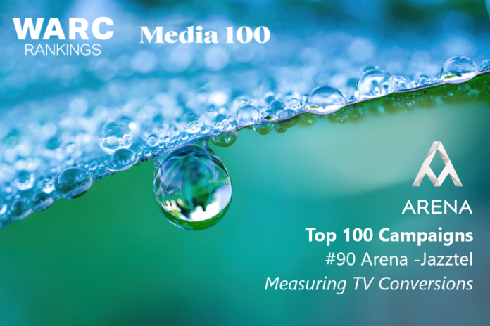WARC Media 100 es la clasificación anual de las campañas y agencias de medios más premiadas del mundo y Arena es la única agencia española con presencia este ranking internacional. Es el proyecto “Measuring TV Conversions”, desarrollado por Arena y el equipo de Data & Insights de HMG para Jazztel el que ocupa la posición #90 de este listado de excelencia en el que se encuentran las 100 mejores campañas de medios.
