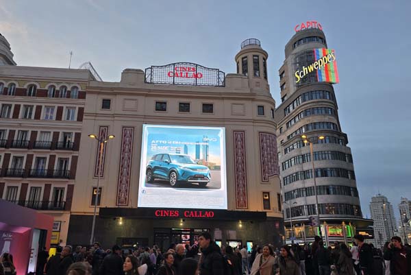 BYD ha elegido el corazón de Madrid como escenario para comunicar su nuevo lanzamiento en España. El fabricante asiático de automoción ha puesto en marcha en las pantallas exteriores de Callao City Lights una acción especial para presentar al mercado español el nuevo ATTO 2 DM-i, un SUV compacto híbrido enchufable posicionado como una de las apuestas más ambiciosas de la marca para este 2026.