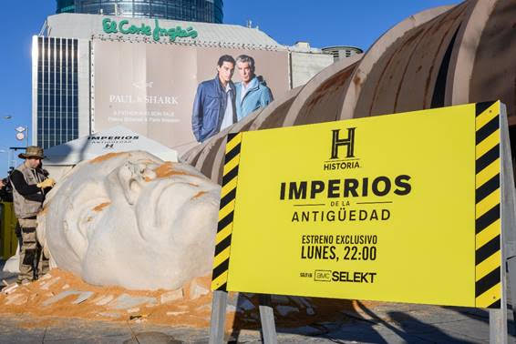 Canal HISTORIA, producido por AMC Networks International Southern Europe, ha recreado una excavación arqueológica en el centro de Madrid con motivo del estreno de la serie documental ‘Imperios de la Antigüedad’. La instalación está compuesta por un busto semienterrado de grandes dimensiones de Julio César que convierte a los viandantes en arqueólogos por un día.
