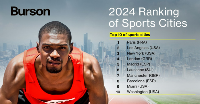 Burson, líder global en comunicación que crea valor para sus clientes a través de la reputación, ha publicado el Ranking 2024 de Ciudades Deportivas. A falta de pocos días para la celebración de los Juegos Olímpicos de París 2024, la capital francesa se proclama la principal ciudad deportiva del mundo por segundo año consecutivo. Los Ángeles, anfitriona de los Juegos de 2028, ocupa el segundo lugar y Nueva York el tercero. Londres, por primera vez, queda fuera de los tres primeros puestos, y Madrid se une al club de las cinco mejores.