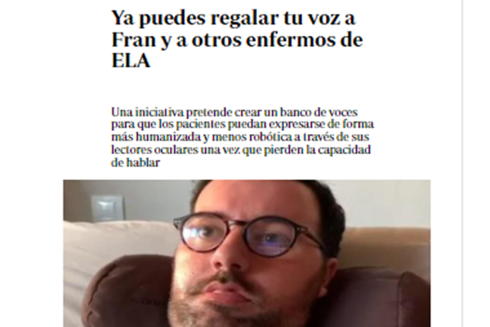 - Aumentar el número de voces registradas en un Banco de Voces, para que los enfermos con ELA puedan expresarse con una voz sintética más adaptada a sus preferencias a través de sus lectores oculares una vez que pierden la capacidad de hablar.