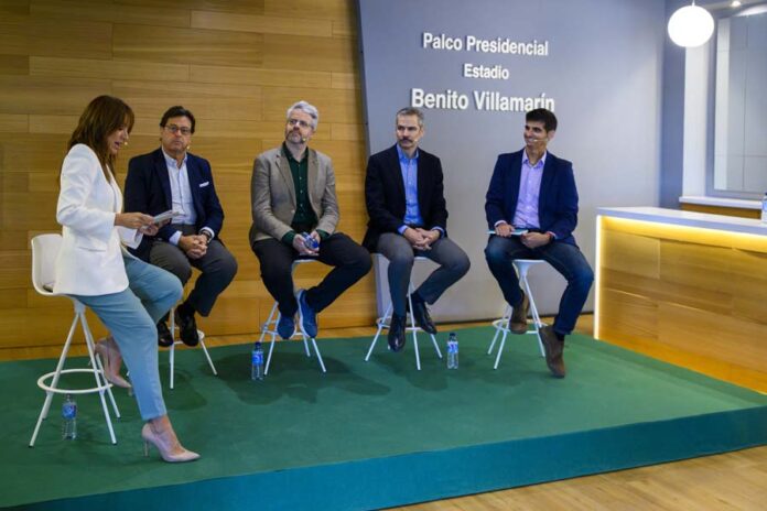 – Estadio Benito Villamarín de Sevilla en octubre donde Jody Ford, CEO de Trainline, y Rafael Muela, gerente de la Fundación Real Betis Balompié, mantuvieron un diálogo previo a una mesa redonda en la que se contó con Pedro García, Country Manager de Trainline en España; Federico Pareja, Commercial, Marketing and Communications Director en Ouigo; Miguel Ángel Uriondo, Director de Comunicación y Asuntos Públicos de Flix y Antonio Castaño, Gerente General de Sevilla City Office. Además del cierre del evento a cargo del CEO del Betis, Ramón Alarcón y Minerva Salas, Tercera Teniente de Alcalde.
