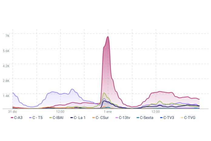 La retransmisión de Antena 3 acaparó el 70% de los comentarios, mientras que Canal Sur fue la cadena autonómica que más conversación generó entre los usuarios. Ibai Llanos irrumpe con sus campanadas virtuales y congrega a más de 798.000 espectadores.