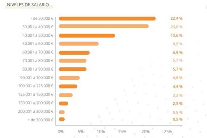 Según el estudio, el 66,1 % de los profesionales de la comunicación percibe un salario inferior a 60.000 euros anuales. De hecho, el 22,4 % de los profesionales cobra menos de 30.000 euros al año. Ambos valores se mantienen desde el año 2017.