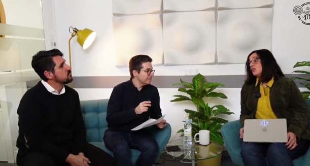 Carlos Molina y Jorge López charlan con Mariana Hernández Delfino, experta en digitalización de empresas.