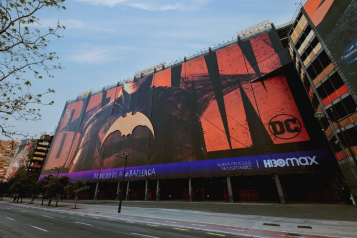 El estadio del Valencia CF ostenta hoy la lona publicitaria más grande de España. Una pieza, de 4.107 m2, que cubre toda la fachada del Mestalla, y que culmina el acuerdo de colaboración entre el club y HBO Max para la promoción de su nueva película “The Batman”. La lona forma parte de la campaña ideada por la agencia creativa CYW, que ha conseguido algo inédito: mantener el murciélago corpóreo del club en el centro de la creatividad.