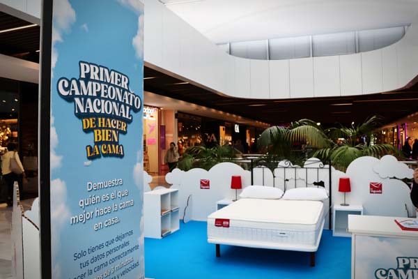 En esta ocasión, el centro comercial colabora con Pikolin para celebrar el I Campeonato Nacional de Hacer Bien la Cama. Cuatro tipos de dormitorios rodeados de moquetas y vallas que simulan estar en el mundo de los sueños, provistos de varias opciones de ropa de cama, constituyen el espacio donde tendrá lugar elevento.