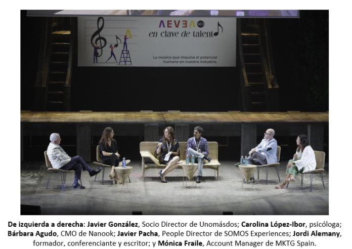 Tras la ponencia de González, “Radiografía del talento en el sector de la organización de eventos”, se abrió una mesa redonda que contó con la participación de Jordi Alemany, Carolina López-Ibor, Bárbara Agudo (CMO de Nanook), Mónica Fraile (account manager de MKTG Spain) y Javier Pacha (People director de SOMOS).
