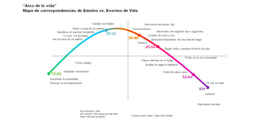 En concreto, el informe concluye que las aproximaciones a los consumidores basadas en la edad ya no son suficientes para comprender su comportamiento y deben tratarse de un simple punto de partida, dado que, por regla general, si la vida adulta la dividimos en acontecimientos vitales, de los 22 existentes, dos terceras partes se producen entre los 25 y los 54 años, es decir, abarca demasiadas edades.