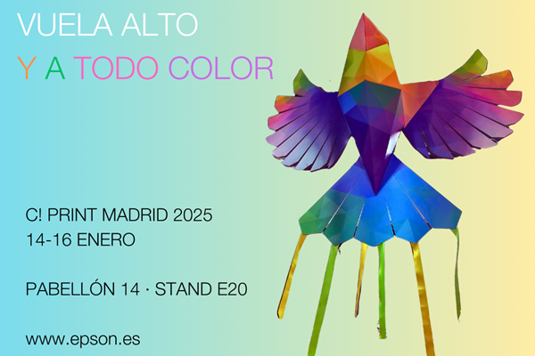 Epson se presentará en C! Print 2025 en Madrid (IFEMA, del 14 al 16 de enero) como la opción de confianza, calidad y menor impacto medioambiental para quienes busquen un proveedor tecnológico para impresión personalizada sobre todo tipo de materiales, microproducción textil o cartelería de alta calidad. Todo ello con una puesta en escena donde predomina el uso de materiales reciclados o de bajo impacto, presididos por un inmenso colibrí realizado en cartón por CartonLab e impreso con tecnología de tinta de resina SureColor R5000.