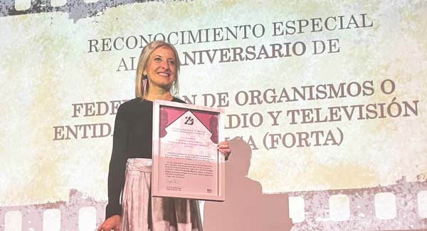 Fuertes, que ha aceptado el Distintivo Especial en nombre de las 12 cadenas que integran la FORTA, las productoras que trabajan con ellas y los espectadores, oyentes y usuarios de contenidos audiovisuales a través de Internet, ha defendido durante su discurso el papel de la Federación como “trampolín desde el que el talento local salta al mundo”.
