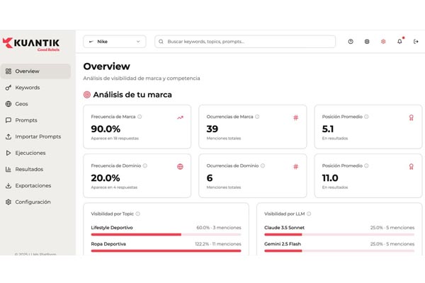 Todo ello se traduce en métricas comparables entre modelos, marcas y competidores, y en una visión evolutiva en el tiempo, generando insights claros y accionables para que los equipos de marketing y comunicación tomen mejores decisiones en un entorno cada vez más dominado por la inteligencia artificial.