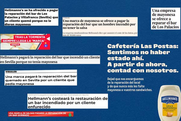 A finales de agosto, en plena ola de calor y cuando media España luchaba contra los incendios forestales, saltó a los medios un incidente de tintes surrealistas, rayano lo absurdo, sobre una cafetería del municipio sevillano de Los Palacios y Villafranca que fue incendiada por un cliente porque no tenía mayonesa para su montadito. Pero el fabricante de salsas Hellmann’s ha querido que esta historia tenga un final feliz. Por ello, la multinacional anunció hace unos días a través de sus redes sociales su compromiso a sufragar la reparación de los desperfectos sufridos por el establecimiento- asciende a unos 20.000 euros-, además de suministrarle la mayonesa para que nunca más le falte. La consultora Simbiu ha querido analizar a través de un estudio independiente el impacto que ha tenido esta acción de comunicación corporativa tanto en las redes sociales como en los medios de comunicación entre el día 12, fecha en que la conocida marca realizó la publicación en sus redes, y el 22 de septiembre.