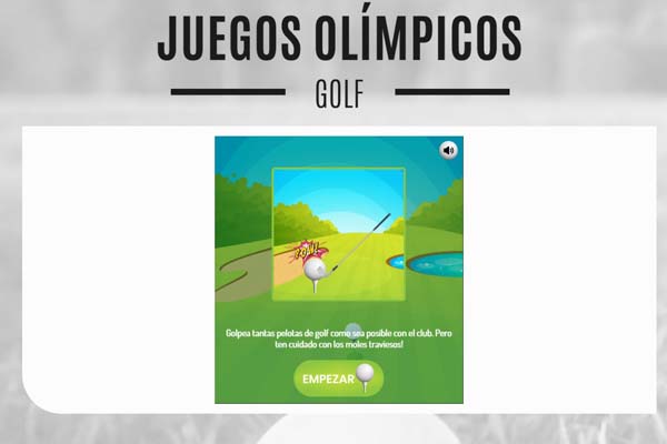 Nada mejor que el golf para idear una campaña de con el juego ‘¡golpéalo!’ en el que los participantes tengan que golpear todas las pelotas de golf que van saliendo, aleatoriamente, de diferentes agujeros, mientras tratan de no golpear a los topos.