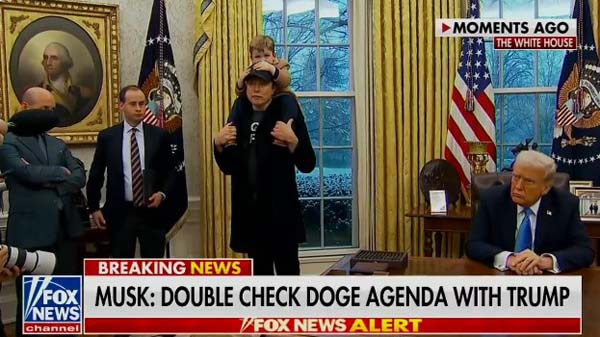 Un ejemplo emblemático de esta estrategia es la reunión con Elon Musk en el Despacho Oval, donde el magnate tecnológico apareció acompañado de su hijo de cuatro años. La imagen de Musk, sosteniendo a su hijo en un entorno tan solemne como la Casa Blanca, se convirtió rápidamente en un símbolo de la relación entre el poder político y el empresarial. Durante la reunión, Musk y Trump conversaron sobre la reducción de la burocracia gubernamental, con el expresidente adoptando una postura observadora y calculada. Esta puesta en escena refuerza la narrativa de Trump como un presidente pragmático que se rodea de los líderes más influyentes del mundo para impulsar cambios disruptivos.