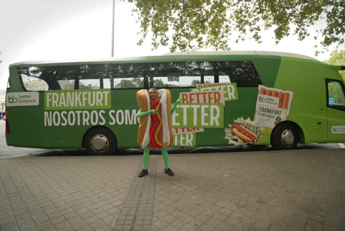 Better Balance convierte el nombre del Eintracht Frankfurt en el protagonista de una acción de street marketing durante el debut del Atlético de Madrid en la Champions League en el Estadio Riyadh Air Metropolitano. Con su icónico hombre vestido de perrito caliente recorrió Madrid con mensajes como “Frankfurt, nosotros somos Better” y “Colchoneros, esta noche cenamos Frankfurt”. De esta manera, la marca aprovechó la ciudad de origen del rival alemán para promocionar con humor su Frankfurt vegetal, consolidada como líder en ventas en su categoría en el mercado español.