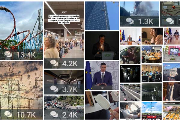 A consecuencia de los problemas experimentados por la caída de la red móvil y de internet, el mayor pico de conversación en la red de la X sobre la crisis energética se registró entre las 10 de la noche y la 1 de la madrugada del día 29, coincidiendo con la vuelta progresiva del suministro en la mayor parte del territorio nacional y con el consiguiente restablecimiento de las telecomunicaciones. Pese a que la conexión a la red quedó bastante limitada, se registraron tuits durante toda la jornada. Desde que comenzó el corte hasta las 5 de la madrugada del día siguiente, cuando quedó totalmente subsanado, se contabilizaron más de 517.000 post sobre el incidente en esta red social publicados por 168.000 usuarios distintos.