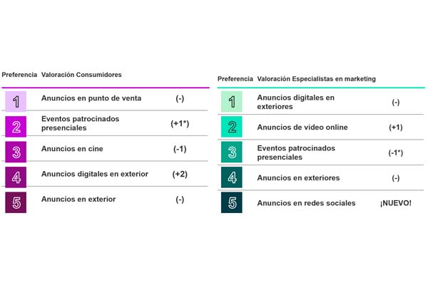 Media Reactions clasifica las plataformas publicitarias según las preferencias de los consumidores y los profesionales del marketing, y, muy sorprendentemente, no hay ninguna marca que coincida en el top cinco de los dos grupos.