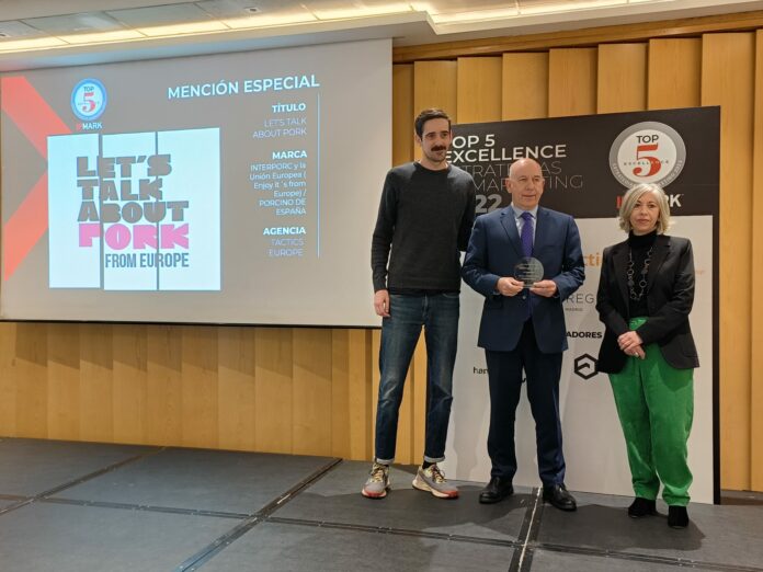La revista IPMARK, que impulsa cada año los prestigiosos premios TOP 5 Excellence Estrategias de Marketing ha otorgado una MENCIÓN ESPECIAL a la campaña de INTERPORC y la Unión Europea «Let´s Talk about pork», por su valentía al defender a la ganadería española, en general, y los beneficios de la carne porcina, en concreto, de los ataques procedentes del sector vegano.