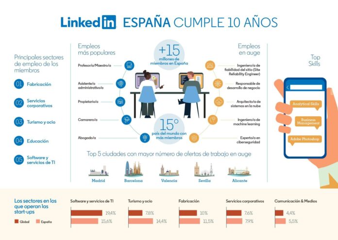 LinkedIn, la red social profesional más grande del mundo, celebra diez años de actividad en Iberia, con más de 15 millones de miembros en España. Nuestro país se sitúa así entre los 15 primeros países del mundo en cuanto a número de miembros registrados en la plataforma.
