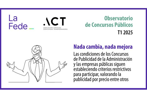 El Observatorio de los Concursos Públicos de Publicidad y Comunicación es un proyecto impulsado y creado por La FEDE que, juntamente con la ACT, dos de las principales asociaciones del sector publicitario que representan a las agencias de publicidad y empresas del sector publicitario, analiza los concursos públicos y emite este informe de forma trimestral.