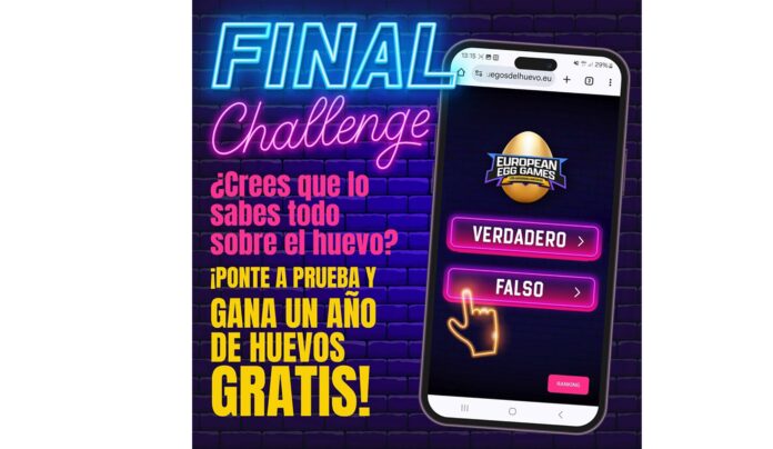 Se trata de un juego en línea, que consiste en responder “verdadero” o “falso” a un centenar de preguntas. Tratan sobre el huevo y su papel en la nutrición, su manejo seguro y el modelo de producción del huevo europeo, el que ofrece más garantías al consumidor. Las información y respuestas están en la web y para jugar se puede acceder a través de https://losjuegosdelhuevo.eu/challenge-9/ o https://egg-quiz.losjuegosdelhuevo.eu/