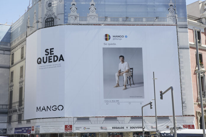 Así, Mango Man ha instalado una lona gigante en el edificio Metrópolis de la calle Alcalá número 41 de Madrid, donde se puede leer “SE QUEDA”, haciendoun guiño al famoso meme vinculado al mundo del deporte y conectando de un modo cercano y directo con los seguidores de Griezmann. La pieza aprovecha los códigos culturales propios del fútbol, pero sin perder la esencia de la firma española de moda.