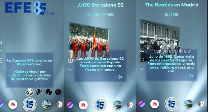 Meta ha colaborado con la Agencia EFE con motivo de la celebración de su 85 aniversario mediante la creación de un filtro de realidad aumentada que incluye fotografías de archivo de EFE y permite acercar nuestra historia reciente a las generaciones más jóvenes.