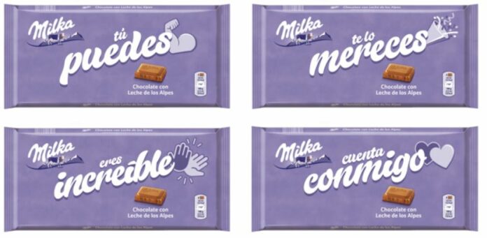 En concreto, esta edición limitada estará compuesta por varios mensajes que parecerán en los envases de las tabletas de chocolate con leche de Milka: ‘Tú puedes’, ‘Te lo mereces’, ‘Eres increíble’ y ‘Cuentas conmigo’. En total, cuatro mensajes destinados a apoyar, felicitar o animar a nuestros seres queridos.
