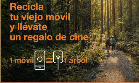 Por cada móvil que llegue a una tienda Orange para reciclar, la compañía plantará un árbol. Además, como premio a su compromiso medioambiental, las personas que colaboren en la campaña, sean o no clientes de Orange, recibirán una entrada de cine o el alquiler de una película en Rakuten.