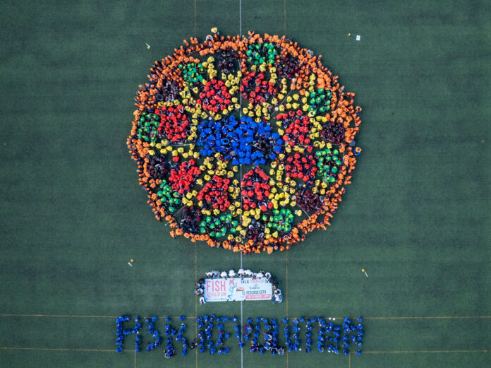 Un total de 1.182 niños y niñas del colegio Juan Pablo II de Alcorcón realizaron el pasado martes la pizza humana más grande del mundo. El motivo, celebrar la llegada de la Fish Pizza a los comedores de los centros escolares donde opera Scolarest, marca especializada en el sector educativo de Compass Group España.
