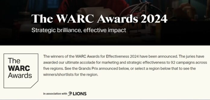 Se anuncian los más altos reconocimientos de los Premios WARC a la Efectividad 2024 , en asociación con LIONS . Los premios honran las mejores campañas de marketing de todo el mundo que brindan brillantez estratégica y un impacto efectivo para impulsar el éxito comercial.