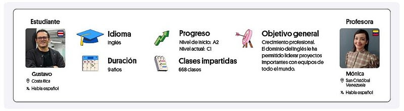 Desde Costa Rica, Gustavo, psicólogo, no solo mejoró su inglés. Tras ocho años de clases con Mónica, su profesora, logró un ascenso laboral y forjó una amistad duradera, marcada por el intercambio cultural y el crecimiento personal.