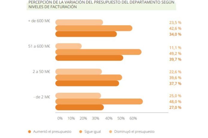 Según el estudio ‘El estado de la Comunicación en España 21-22’, publicado recientemente por la Asociación de Directivos de Comunicación, Dircom, en 2021 un 45,8 % de los presupuestos de los departamentos de comunicación se han mantenido igual; un 21,5 % disminuyeron, y un 32,8 % aumentaron.