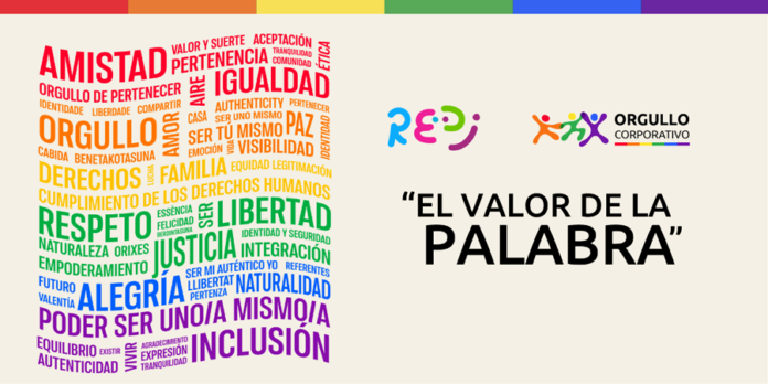 Uno de los ejes centrales de esta edición es la campaña “El valor de la palabra”, una activación digital con la que REDI ha querido dar voz al colectivo LGBTI y a sus personas aliadas dentro del entorno empresarial. Para ello, más de 100 profesionales han elegido aquellas palabras que mejor reflejan su identidad, su vivencia y su compromiso con la diversidad. El resultado es una bandera digital colectiva, un mosaico de colores y términos que destacan el poder del lenguaje como herramienta de afirmación, visibilidad y transformación social. Esta bandera, compartida a través de los canales digitales de REDI y por las propias empresas y profesionales que conforman su ecosistema, busca inspirar al tejido empresarial a mostrar el orgullo de sus plantillas y a reforzar públicamente su compromiso con la inclusión.