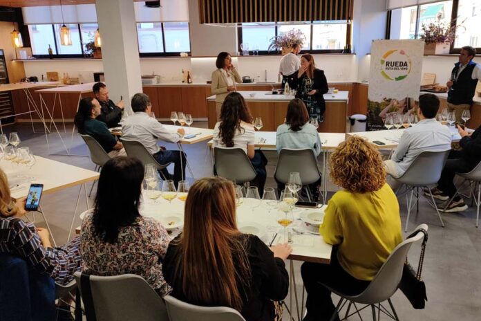 En la cata guiada por parte de Marta Martínez Bujanda y Cristina Solís, presidenta y gerente de la Ruta del Vino de Rueda, se maridaron cada nueva iniciativa con diferentes vinos y con diferentes bocados elaborados frente a los asistentes de la mano de Nauzet Betancort, chef ejecutivo de El hilo de Ariadna, la premiada gastrobodega de Martin Berasategui en Bodegas Yllera, en el municipio de Rueda.