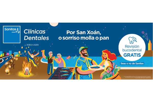 Sanitas Dental participa así en una celebración tan especial con un mensaje que conecta con el orgullo de ciudad y la tradición popular. La campaña adapta el conocido refrán “Por San Xoán a sardiña molla o pan” para lanzar un nuevo guiño a los ciudadanos: “Por San Xoán o sorriso molla o pan”. Una analogía visual y directa que pone en valor la importancia de cuidar la salud bucodental para disfrutar de la fiesta sin molestias.
