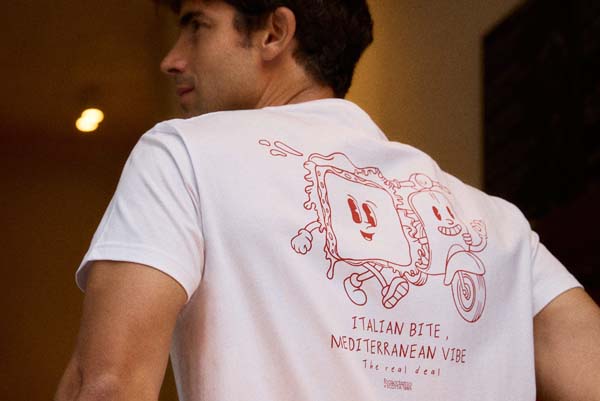 Como pieza central, se presenta una camiseta exclusiva Scotta x Focacciamo, con un diseño original que mezcla el branding de ambas marcas y refleja su espíritu mediterráneo