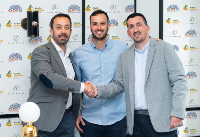 El CEO de SmartRental Group, Juan Carlos Escoda; el gerente de la Asociación de Esclerosis Múltiple de Ibiza y Formentera (AEMIF), Ismael Vargas, y el vicepresidente de Rastro Solidario, Juan Francisco Paredes, firmaron ayer por la tarde este nuevo acuerdo con el que el aceite usado de cocina de SmartRental Group se convertirá en donativos con fines sociales. “SmartRental Group está siempre abierto a colaborar con diferentes proyectos que aporten e impacten en el bienestar de la sociedad” comenta Carlos CEO de SmartRental Group.
