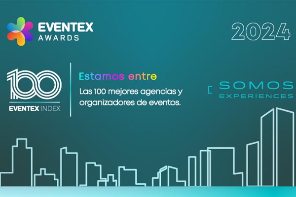 Por segundo año consecutivo, SOMOS Experiences se ha posicionado como una de los “100 mejores organizadores y agencias de eventos” según el Índice Eventex 2024, a nivel internacional, gracias a la excelencia en sus proyectos, que reflejan la pasión, creatividad, talento y compromiso de cada uno de los equipos de la agencia.
