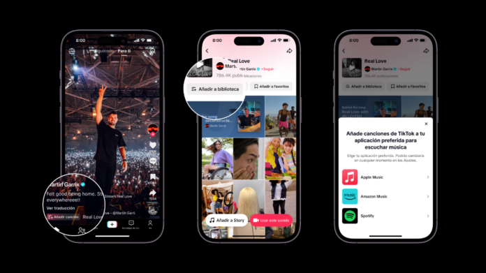 Añadir a App de Música es una nueva funcionalidad que ofrece a los amantes de la música la posibilidad de guardar las canciones que descubren en TikTok en los servicios de streaming de música de su elección, incluyendo Amazon Music y Spotify.