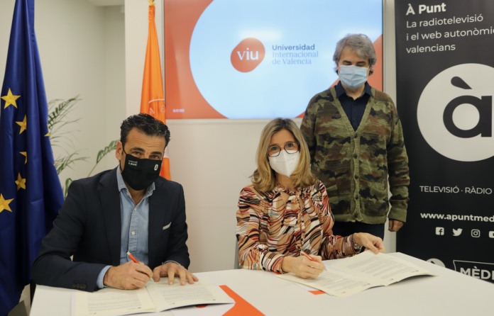 Este convenio se ha oficializado en un acto de firma que contó con la presencia de Eva María Giner, Rectora de VIU – Universidad Internacional de Valencia, y Alfred Costa, director general de la radiotelevisión valenciana. La Rectora de VIU señaló que “la colaboración entre VIU, los medios de comunicación y el mundo empresarial es un pilar fundamental en el propósito de acercar a nuestros estudiantes al mundo laboral actual que les espera. Es una satisfacción que puedan tener la posibilidad de hacerlo en un medio como À Punt, tan cercano a la sociedad”.