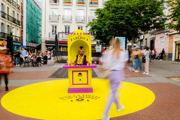 Wekiwi “el adivino”, una instalación pop-up durante la tarde del 6 de junio en la peatonal plaza de Chueca de Madrid que invitó a curiosos y atrevidos a renovar todas sus energías a través de una consulta tarotista que pretendió conectar con la particular mirada de la comercializadora energética y su actual tagline de marca “si no te gusta tu energía, dale la vuelta.